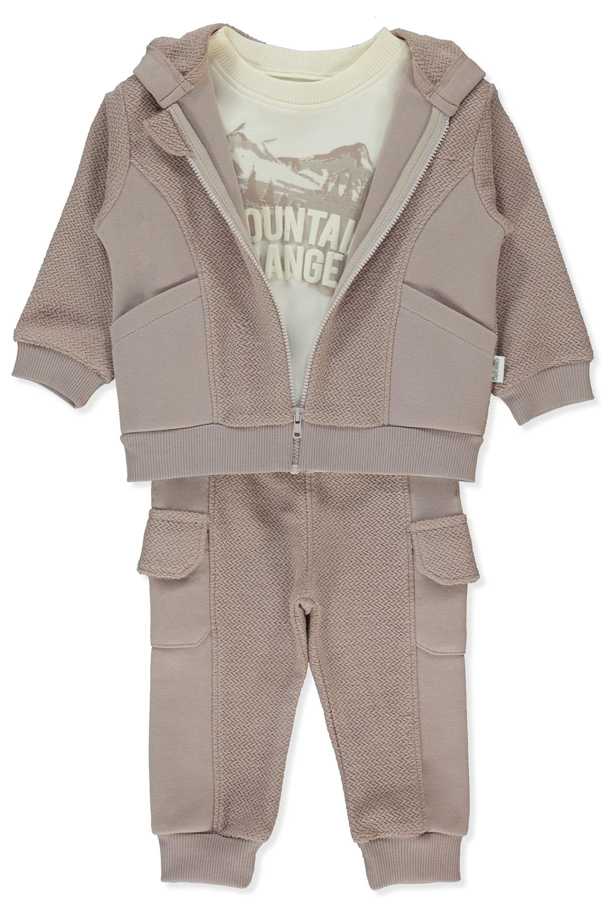 BALIKSIRTI ÜÇ İP KAPŞONLU HIRKA 3LÜ TAKIM (MOUNTAIN RANGE) KAHVERENGİ (K5143-D34)