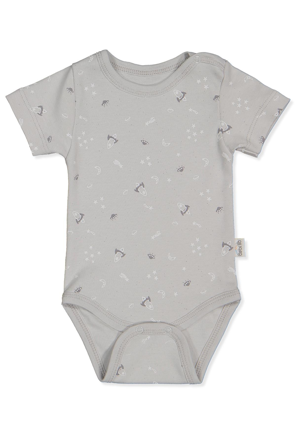 İNTERLOK KISA KOLLU BODY AY BASKILI (DREAM BIG) GRİ