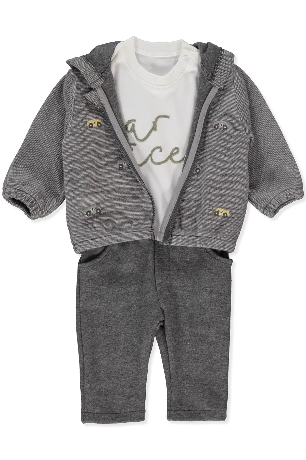 JAKARLI İNTERLOK KAPŞONLU HIRKA 3LÜ TAKIM (CAR RACES) GRİ (K4874-D52)