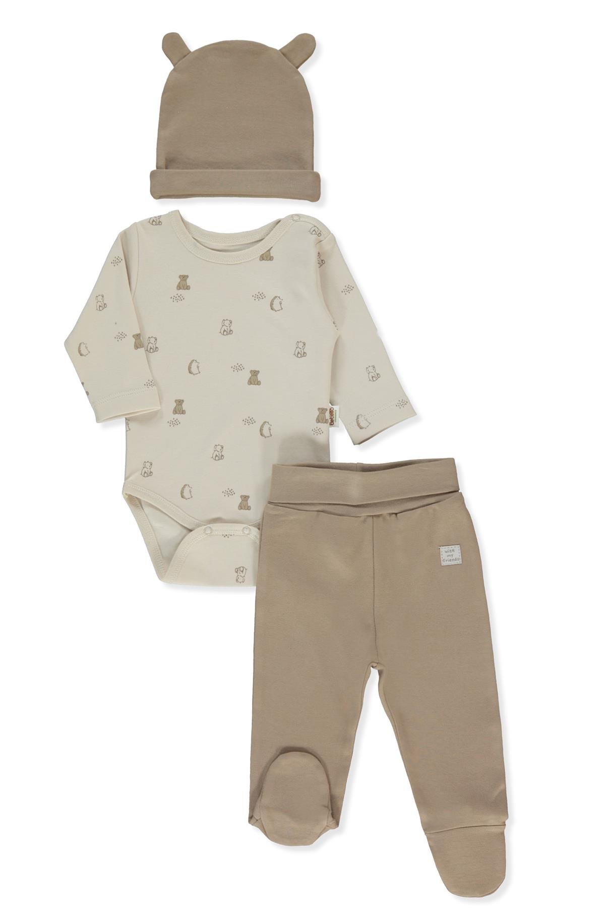 ORGANİK İNTERLOK BODY SET 3LÜ (ORGANIC FUN MOMENT) KAHVERENGİ