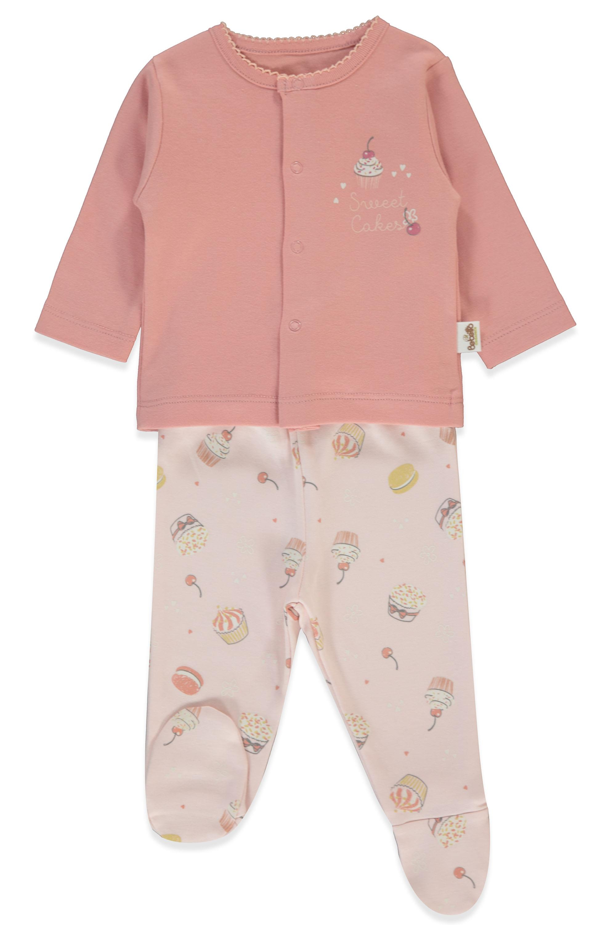 ORGANİK İNTERLOK PATİKLİ PİJAMA TAKIMI 2Lİ (ORGANIC CUPCAKES) SOMON