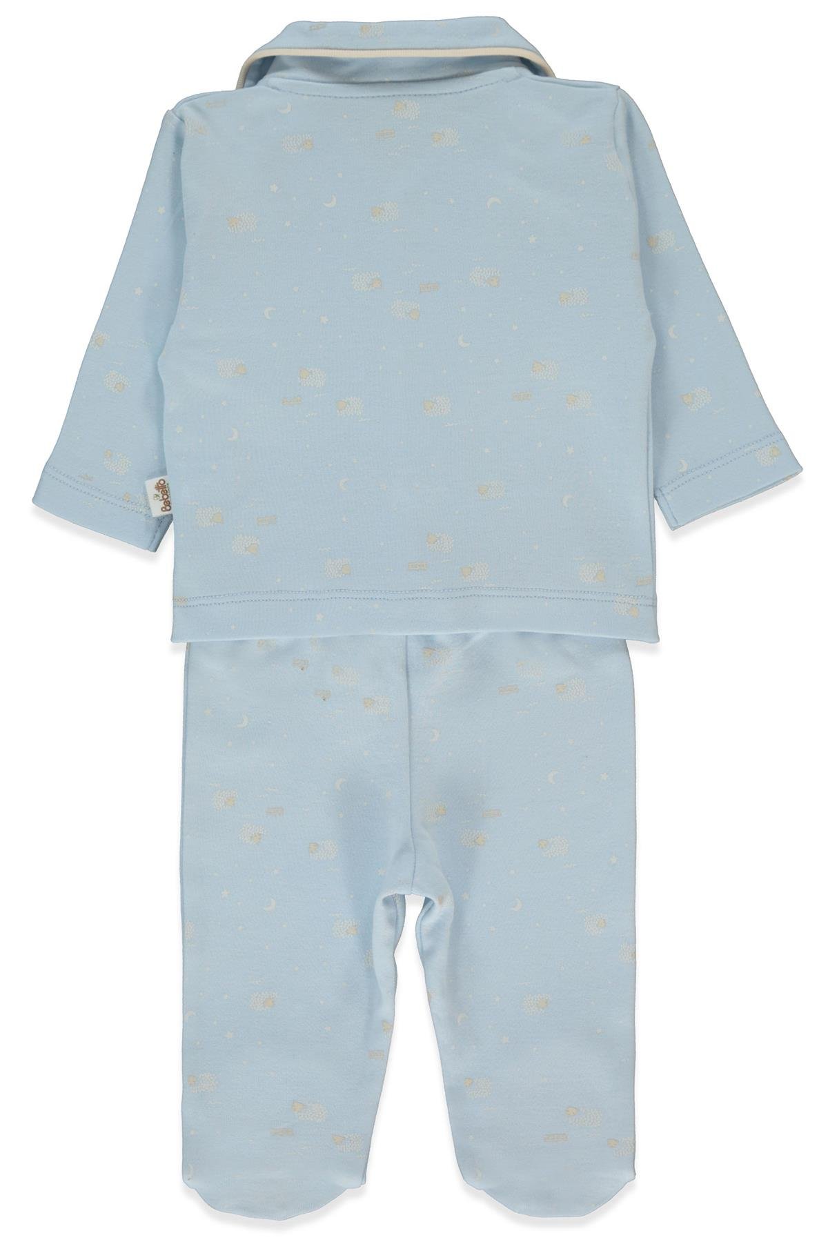 ORGANİK İNTERLOK PATİKLİ PİJAMA TAKIMI 2Lİ (ORGANIC SLEEPY SHEEPY) MAVİ (F1448-C111)