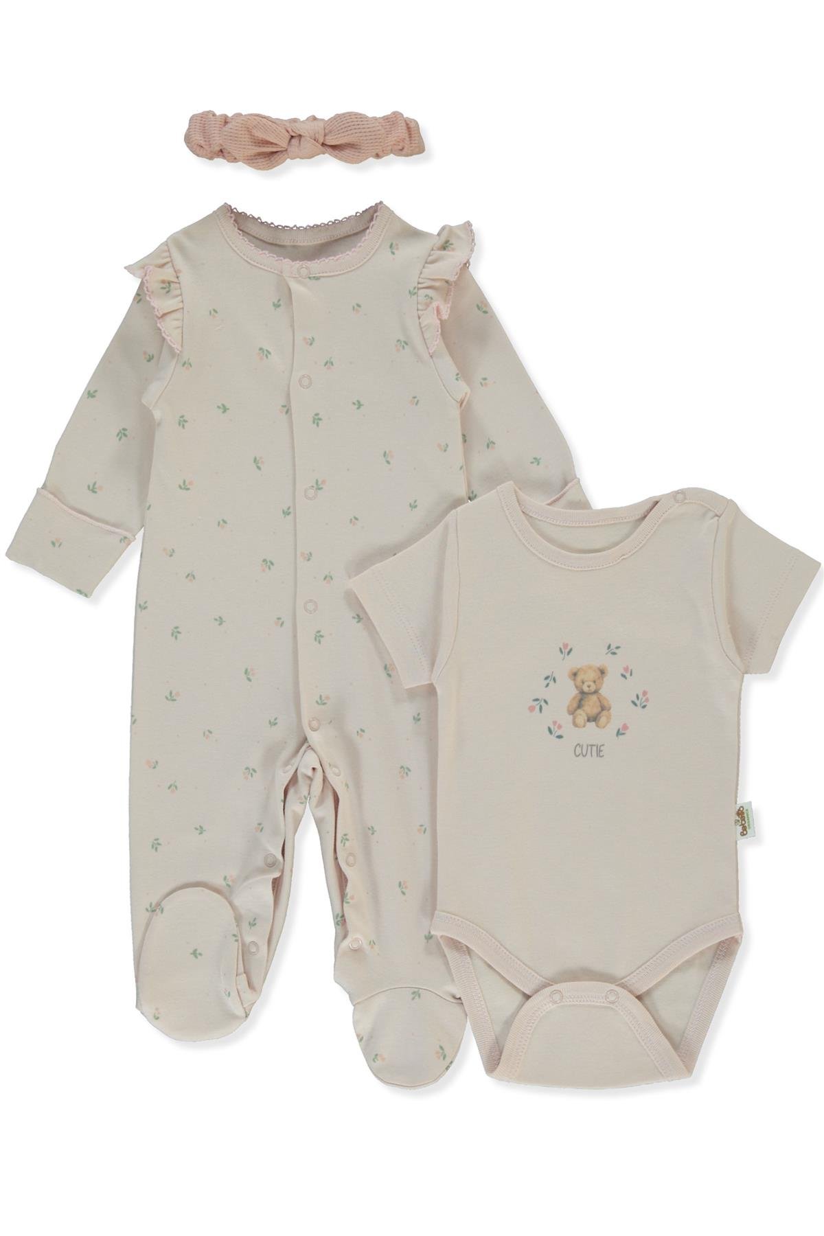 ORGANİK İNTERLOK PATİKLİ TULUM SET 3LÜ (ORGANIC CUTE BEAR) SOMON (Z1034-E52)