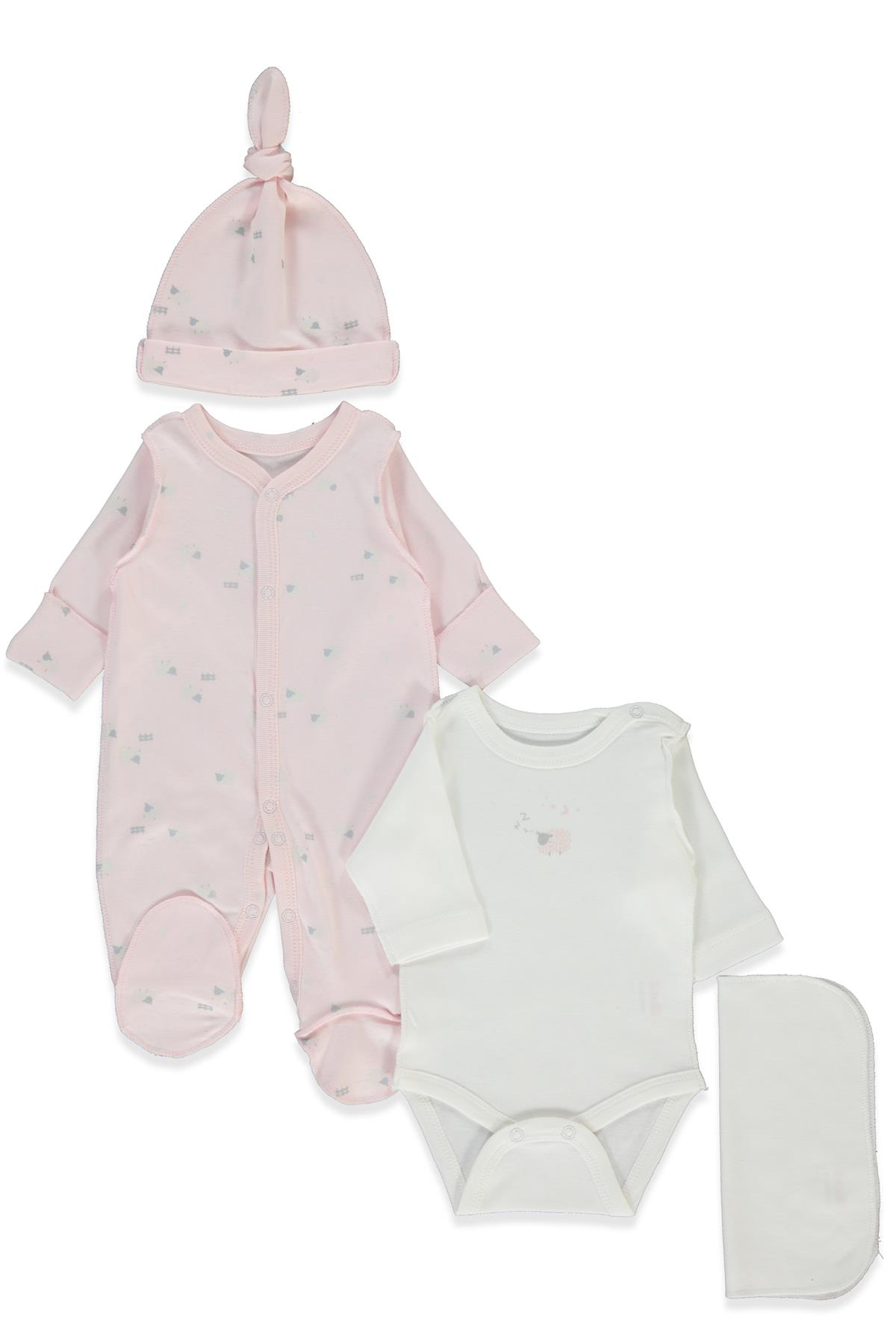ORGANİK İNTERLOK PREMATURE TULUM SET 4LÜ (ORGANIC SLEEPY SHEEPY) PEMBE (Z1075-C51)