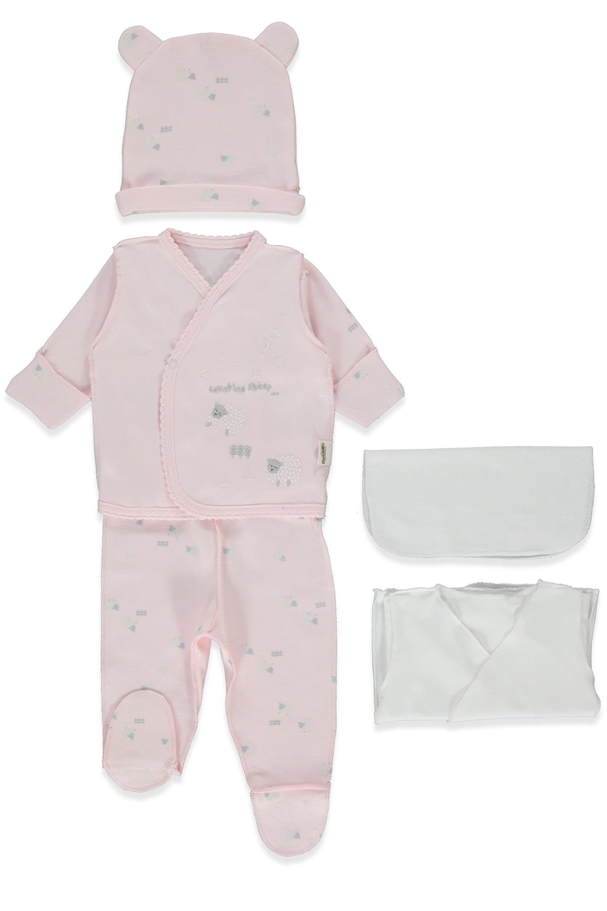 ORGANİK İNTERLOK PREMATURE ZIBIN SET 5Lİ (ORGANIC SLEEPY SHEEPY) PEMBE (Z1074-D33)