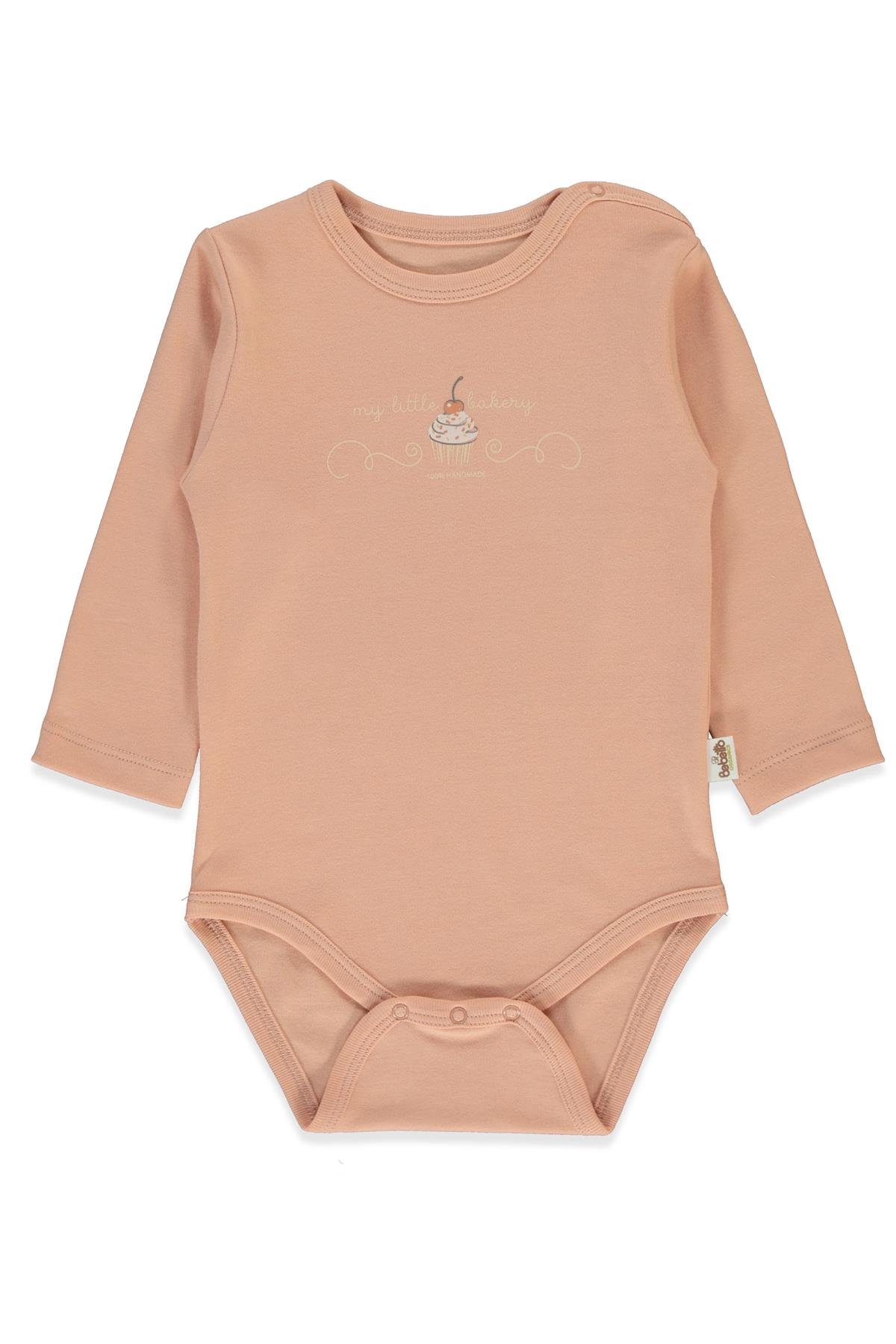 ORGANİK İNTERLOK UZUN KOLLU BODY YAŞ (ORGANIC CUPCAKES) GÜL KURUSU