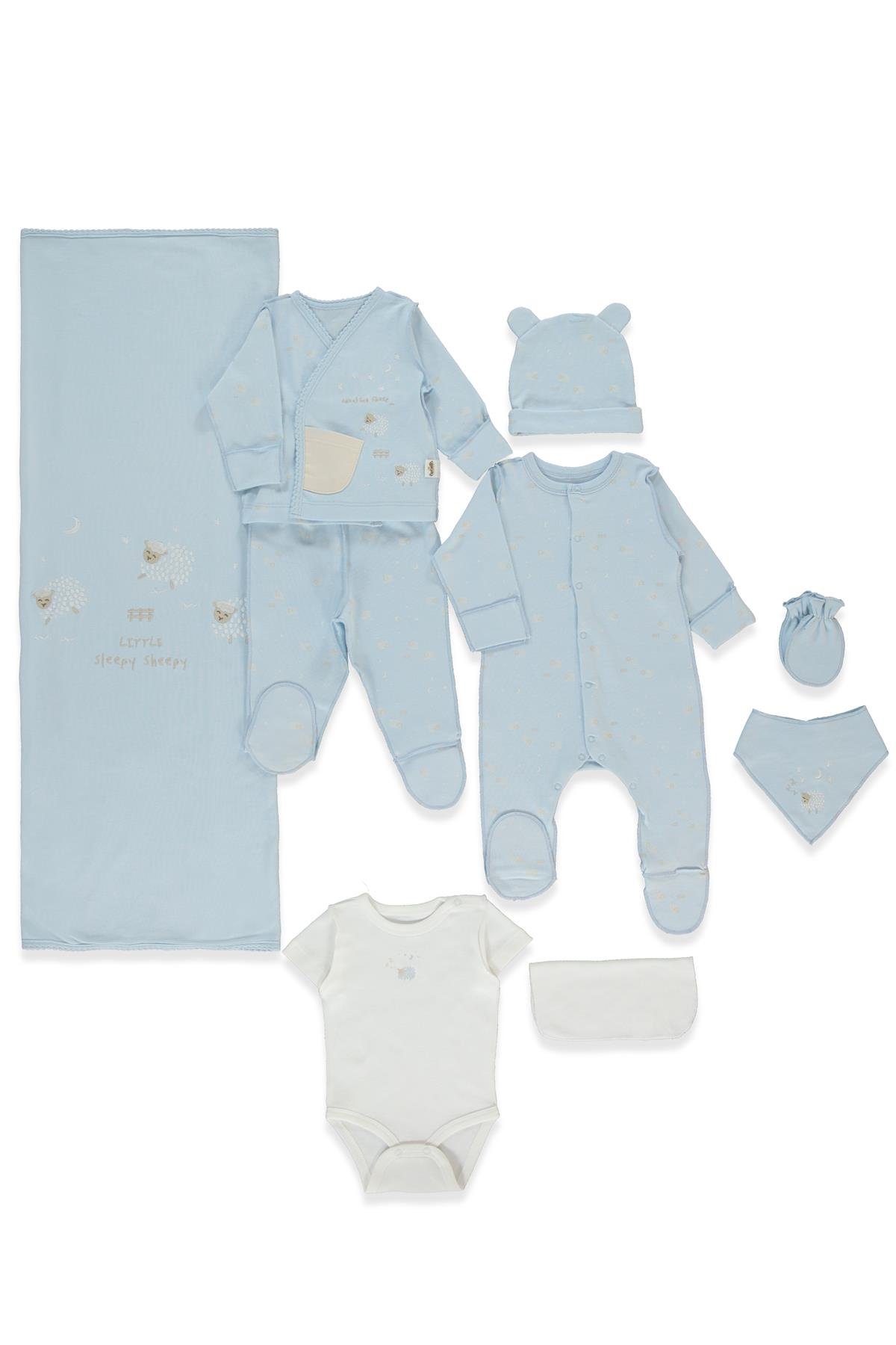 ORGANİK İNTERLOK ZIBIN SET 10LU (ORGANIC SLEEPY SHEEPY) MAVİ (Z1071-G13)