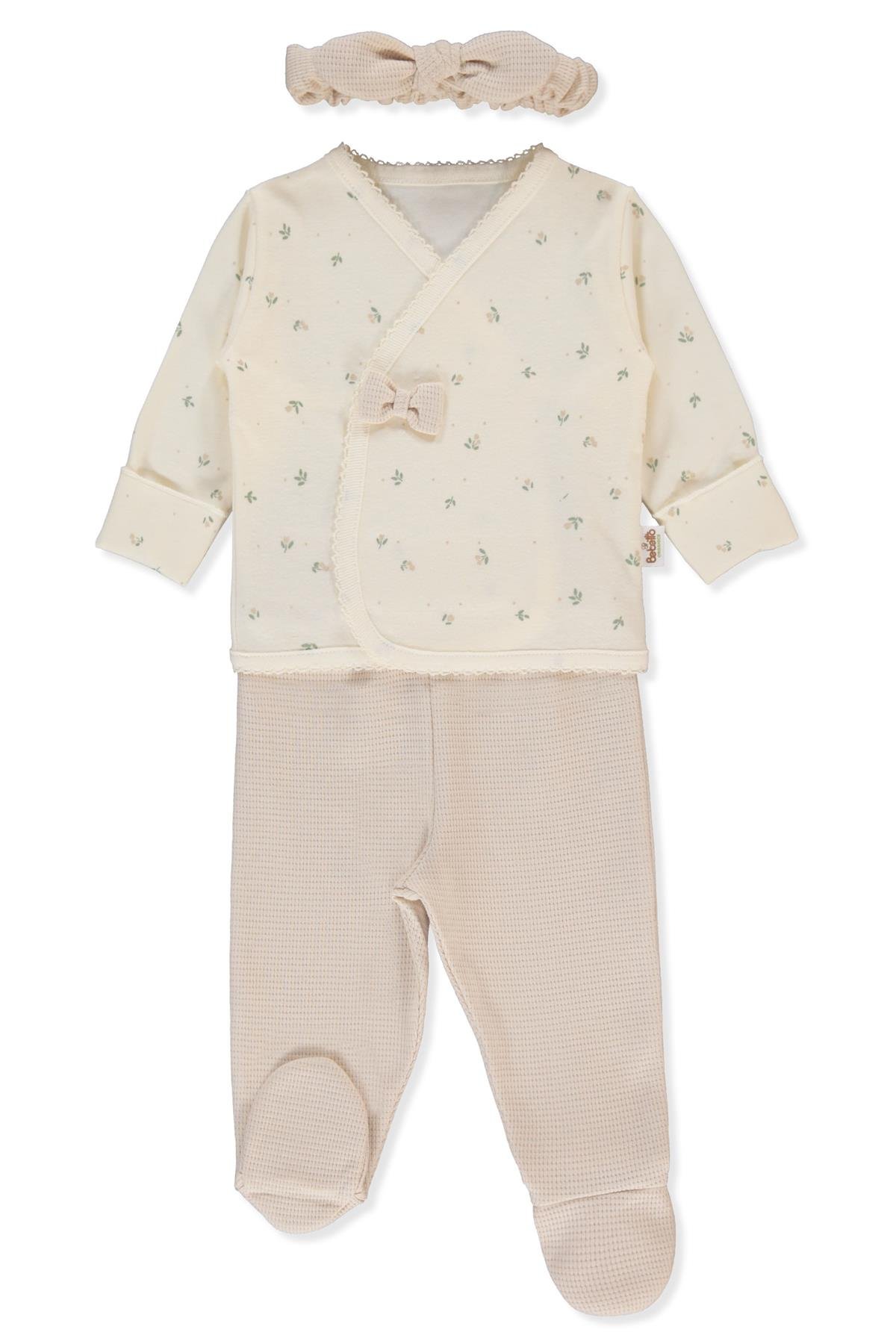 ORGANİK İNTERLOK ZIBIN SET 3LÜ (ORGANIC CUTE BEAR) BEJ (Z1035-D73)