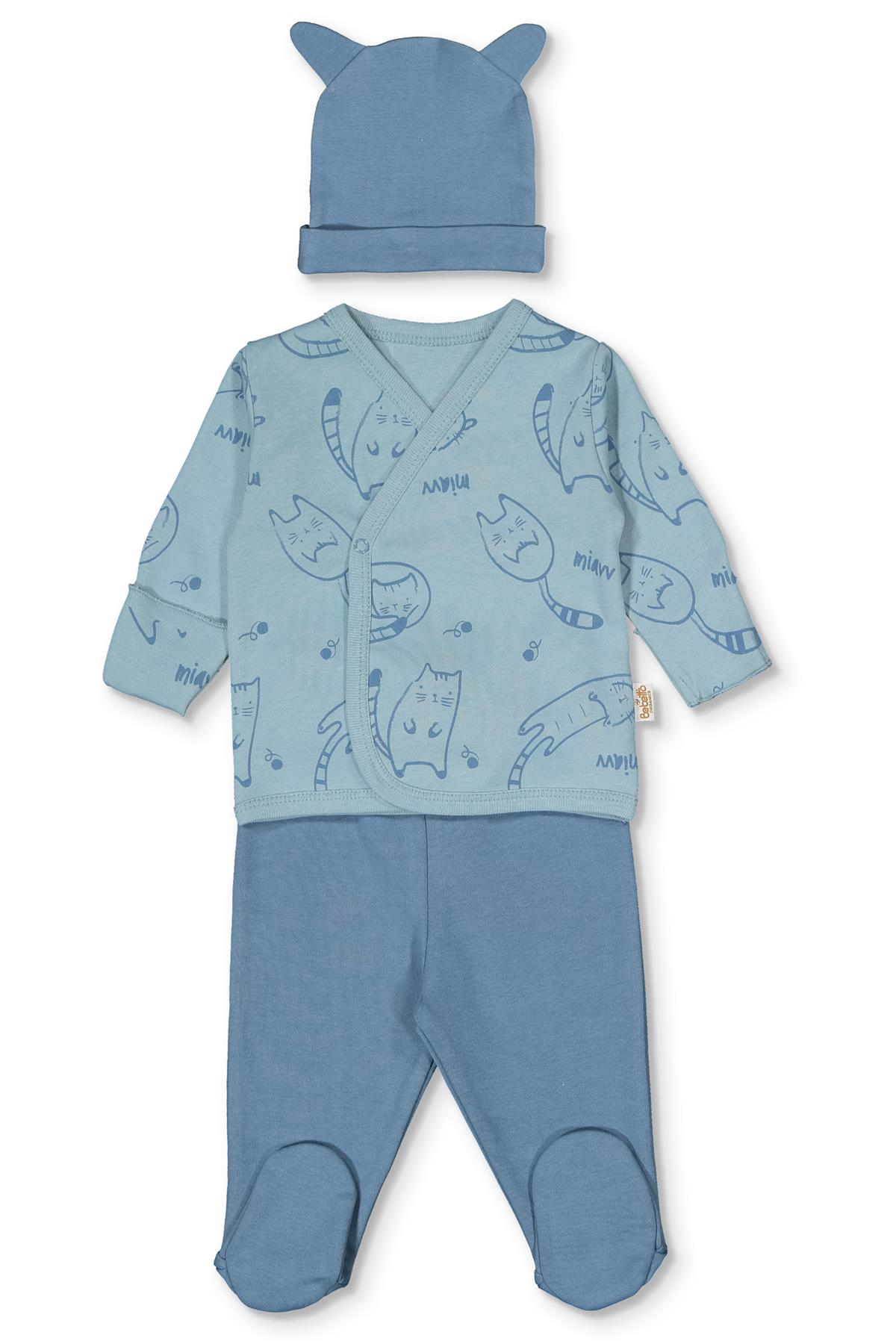 ORGANİK İNTERLOK ZIBIN SET 3LÜ (ORGANIC SLEEPY CAT) İNDİGO (Z993-E62)