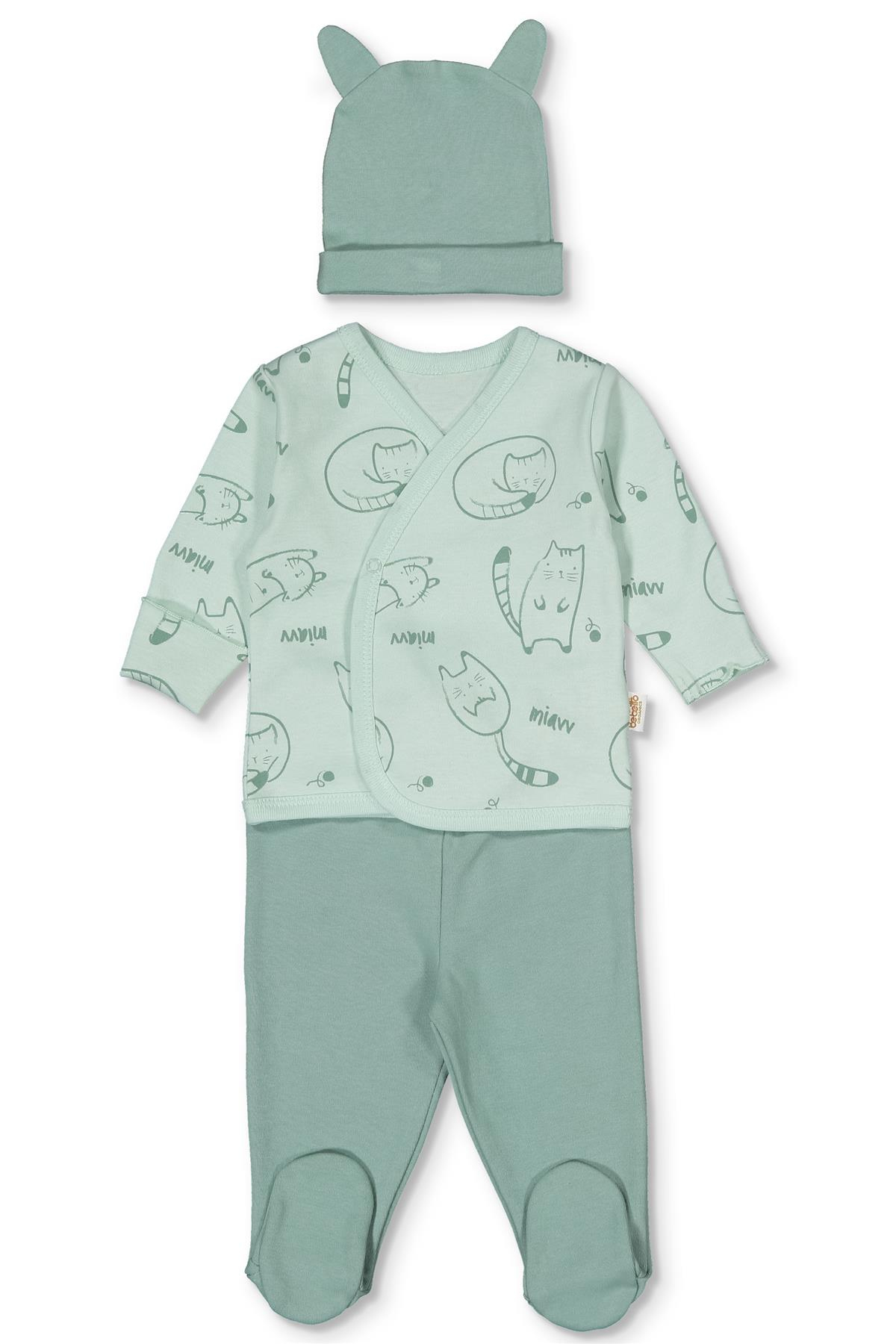 ORGANİK İNTERLOK ZIBIN SET 3LÜ (ORGANIC SLEEPY CAT) YEŞİL (Z993-E54)