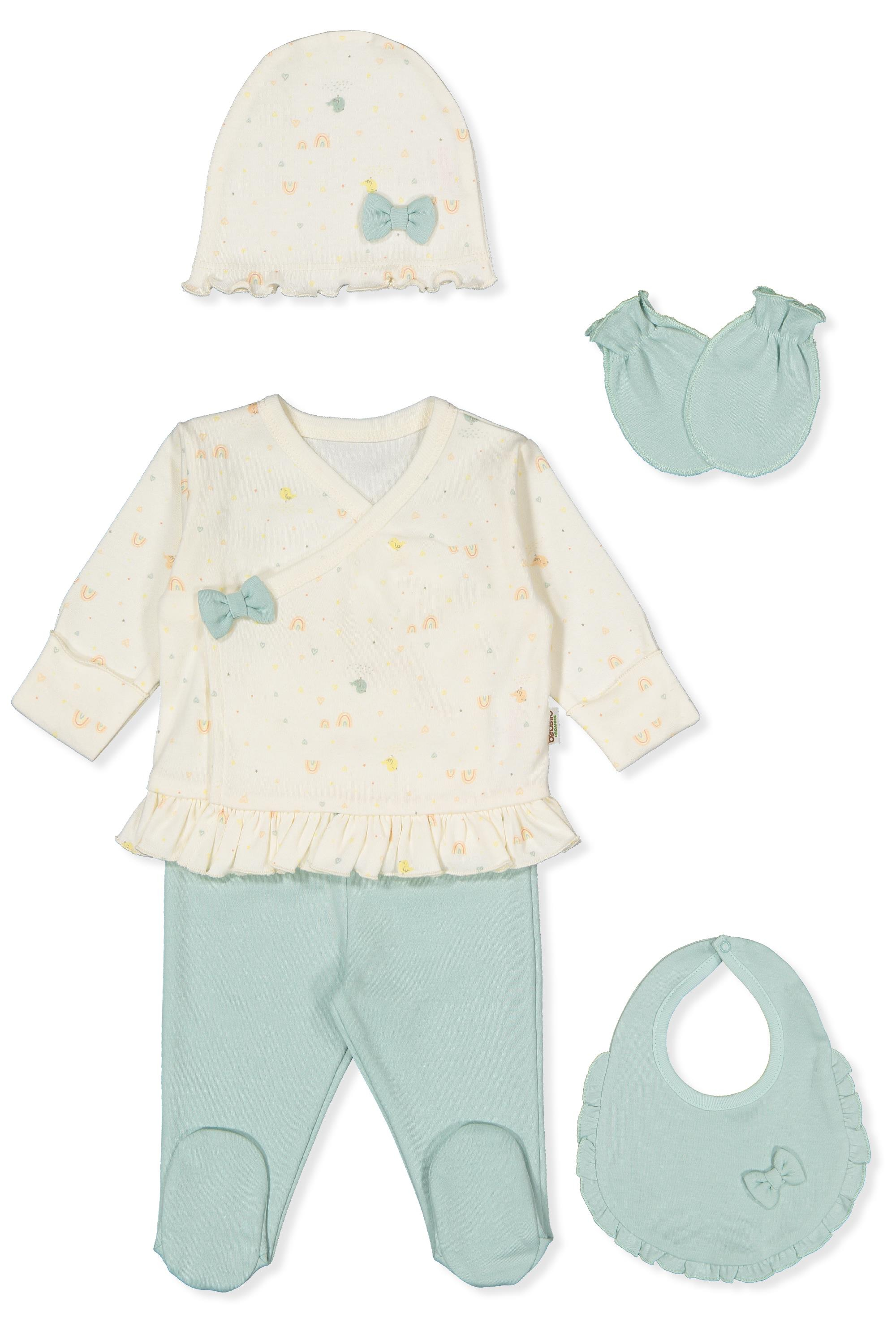 ORGANİK İNTERLOK ZIBIN SET 5Lİ (ORGANIC COLORFUL BIRDS) MİNT (Z985-E52)