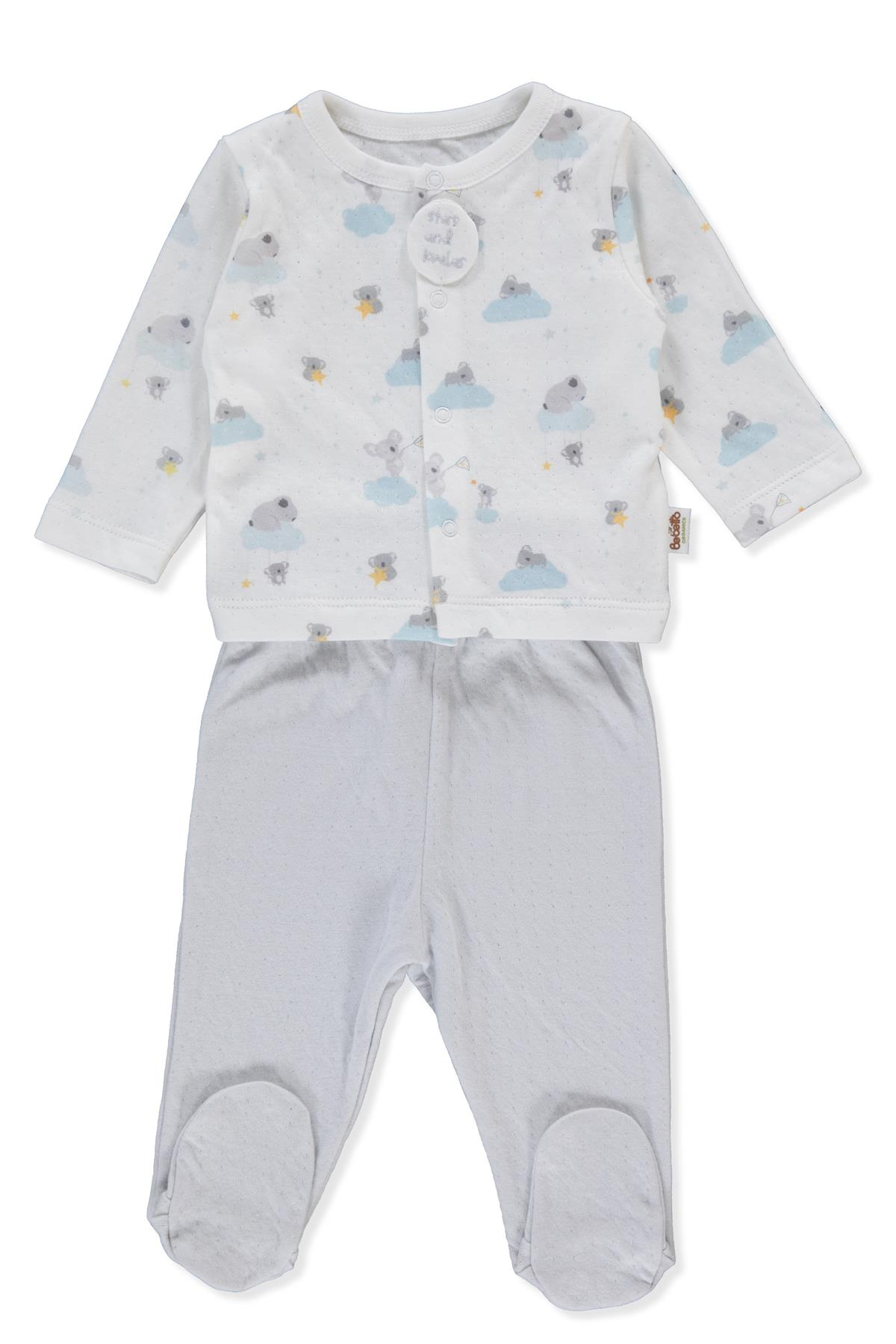 ORGANİK SÜPREM DOUBLE PATİKLİ PİJAMA TAKIMI (ORGANIC STARS AND KOALAS) GRİ (F1426-E81)