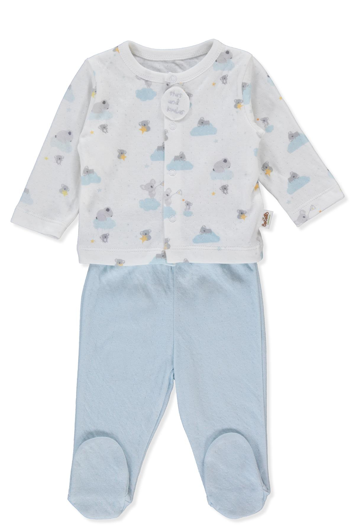 ORGANİK SÜPREM DOUBLE PATİKLİ PİJAMA TAKIMI (ORGANIC STARS AND KOALAS) MAVİ (F1426-E71)
