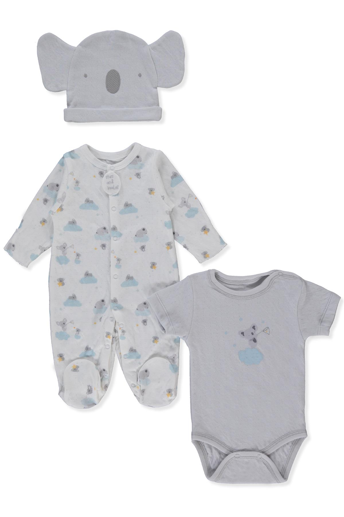 ORGANİK SÜPREM DOUBLE PATİKLİ TULUM SET 3LÜ (ORGANIC STARS AND KOALAS) GRİ (Z1031-C63)