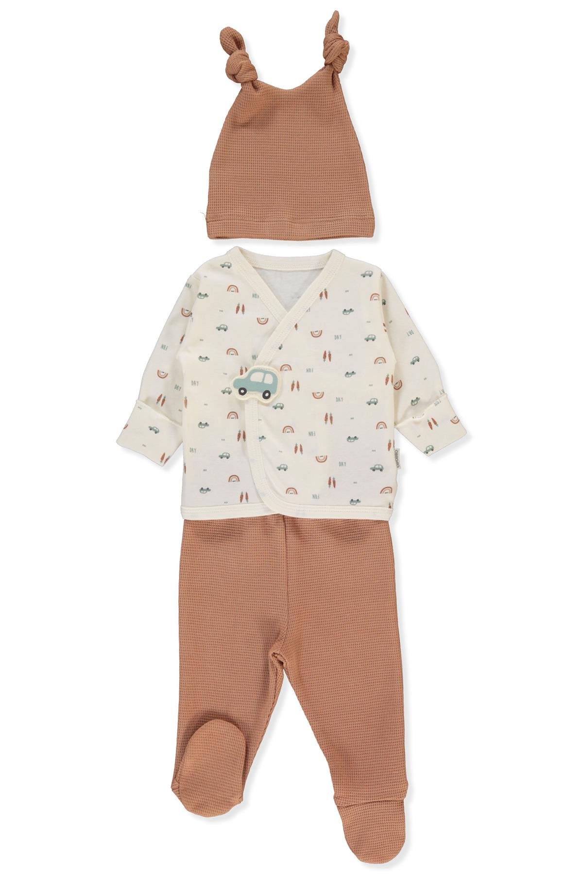 WAFFLE SÜPREM PATİKLİ ZIBIN SET 3LÜ (WOODEN CAR) KAHVERENGİ
