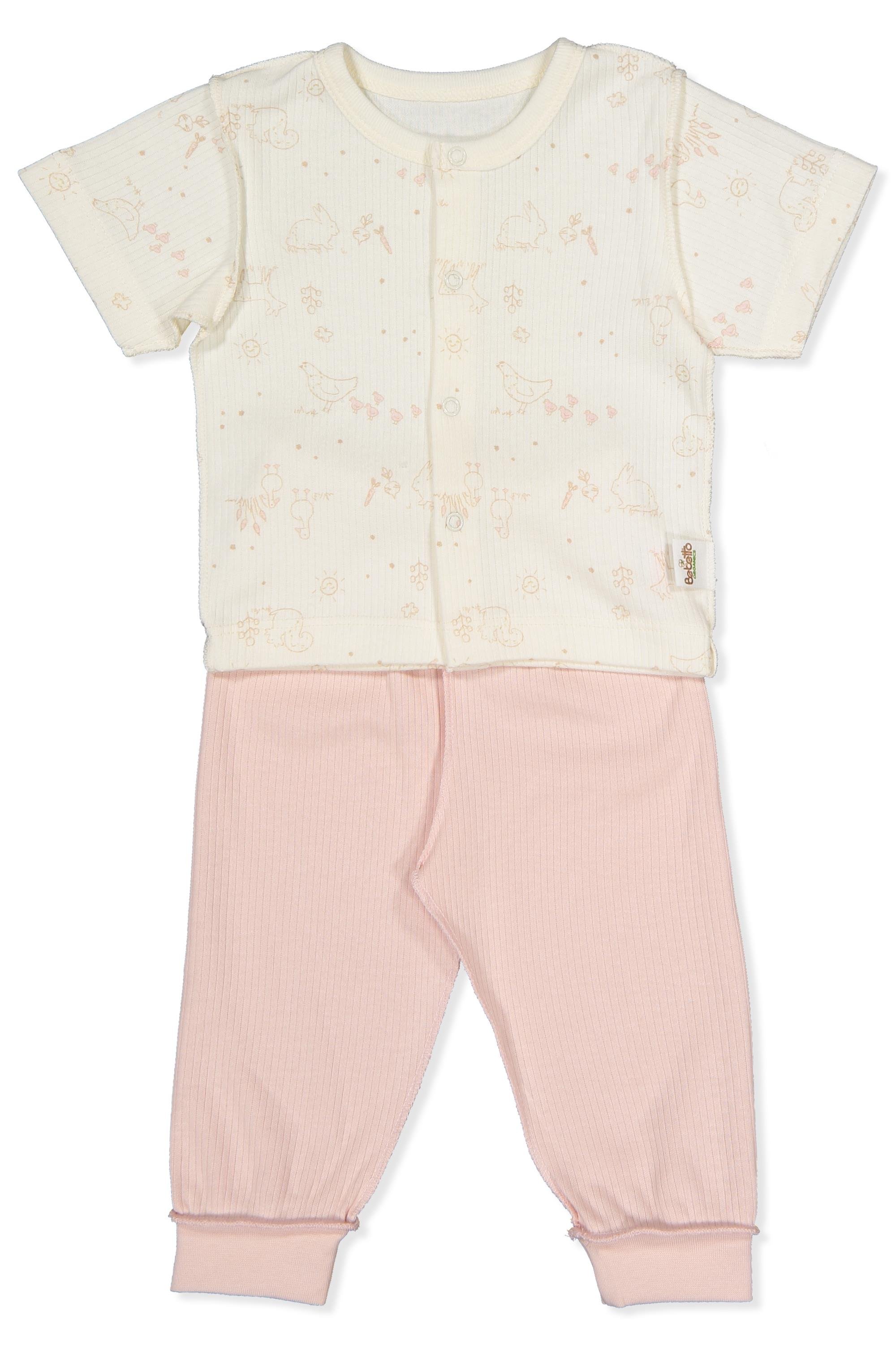 ORGANİK RAPORLU İNTERLOK PATİKSİZ MİNİ PİJAMA (ORGANIC FARM) GÜL KURUSU (F1388-D81)