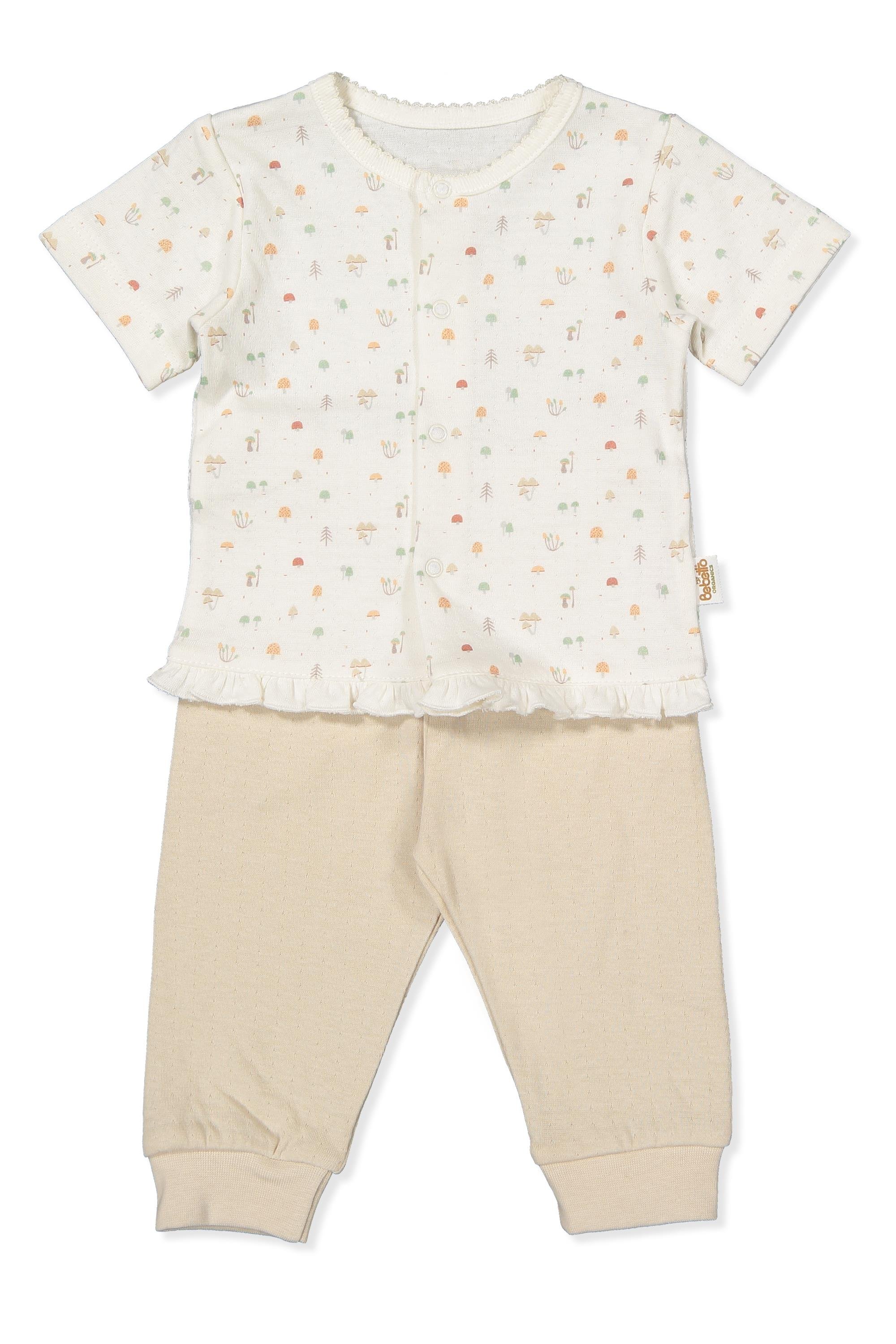 ORGANİK SÜPREM DOUBLE PATİKSİZ MİNİ PİJAMA TAKIMI 2Lİ (ORGANIC MY MUSHROOM) BEJ (F1413-E82)